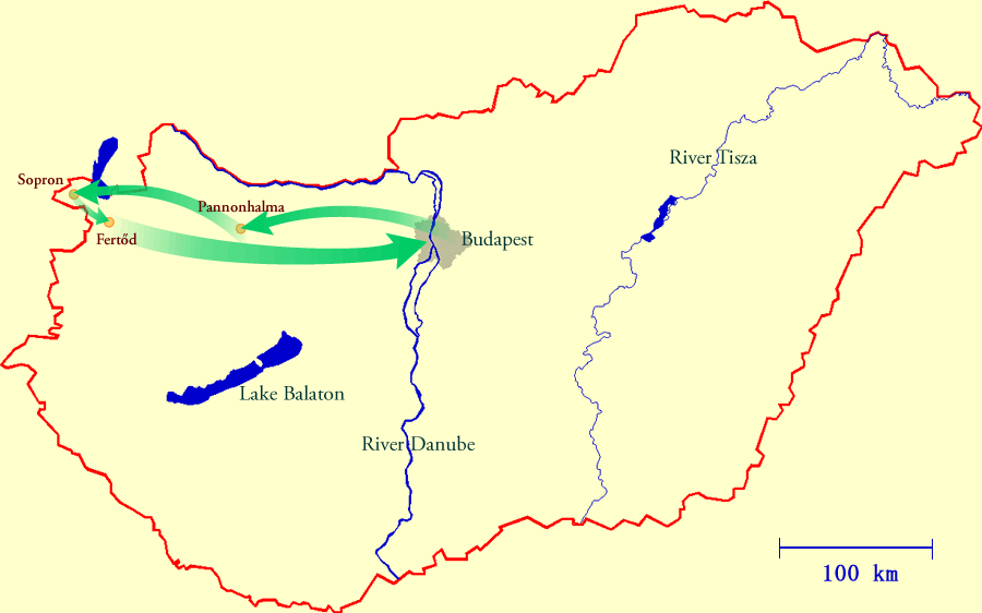 Return to Budapest (182 km). |