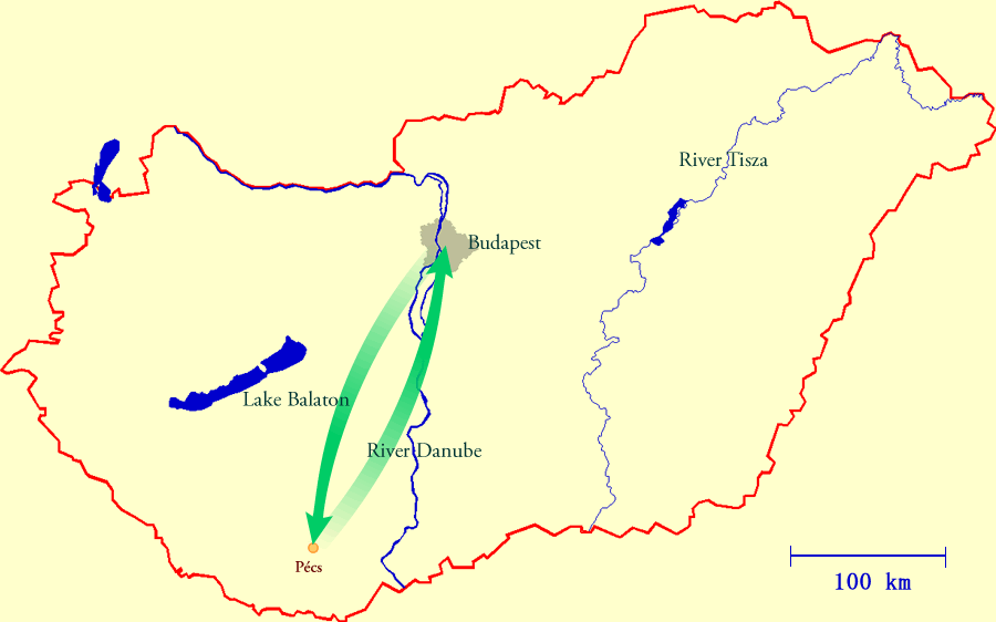 Departure to Pécs, the 5th largest town of Hungary (202 km). |