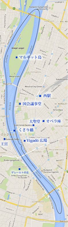 (鎖橋とエリザベート橋の間、Marriottホテルの前に) |